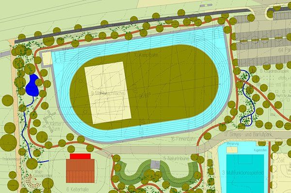 Als Ergebnis sollen die Bausteine Spiel, Kreativität Ruhe und Natur widergespiegelt werden. Das Ziel sind naturnahe Sport-, Spiel- und Begegnungsräume für alle Generationen.