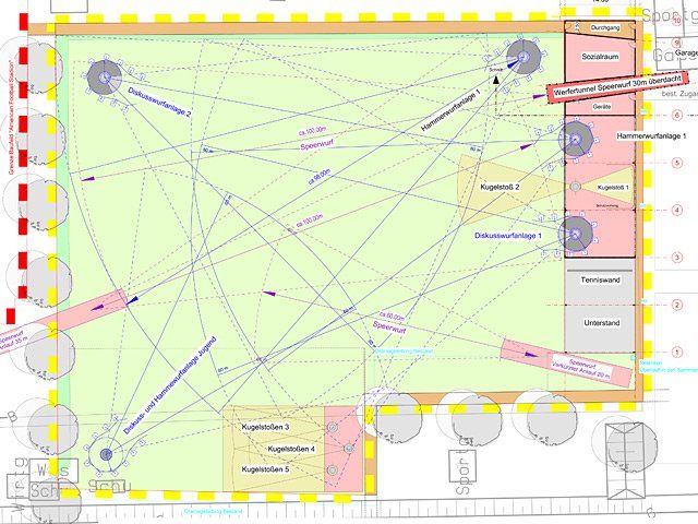 Mit den Umgestaltungsmaßnahmen wurden die örtlichen Verhältnisse so optimiert, dass bei Veranstaltungen wie Turnieren und Sportfesten individuelle, organisations- und ablaufoptimierte Grundrisse verwirklicht werden können.